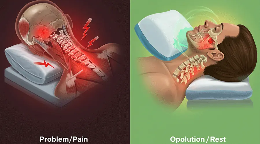Your body’s position during sleep is one of the most significant factors affecting the health of your cervical spine. Sleeping on your stomach is recognized as the most likely cause of morning neck pain. In this position, you are forced to turn your head to one side for hours to breathe. This prolonged rotation puts intense pressure on the neck muscles, tendons, and joints, leading to severe strain and stiffness, which results in pain upon waking. This is a direct cause-and-effect chain where prolonged mechanical pressure is converted into muscle spasms.